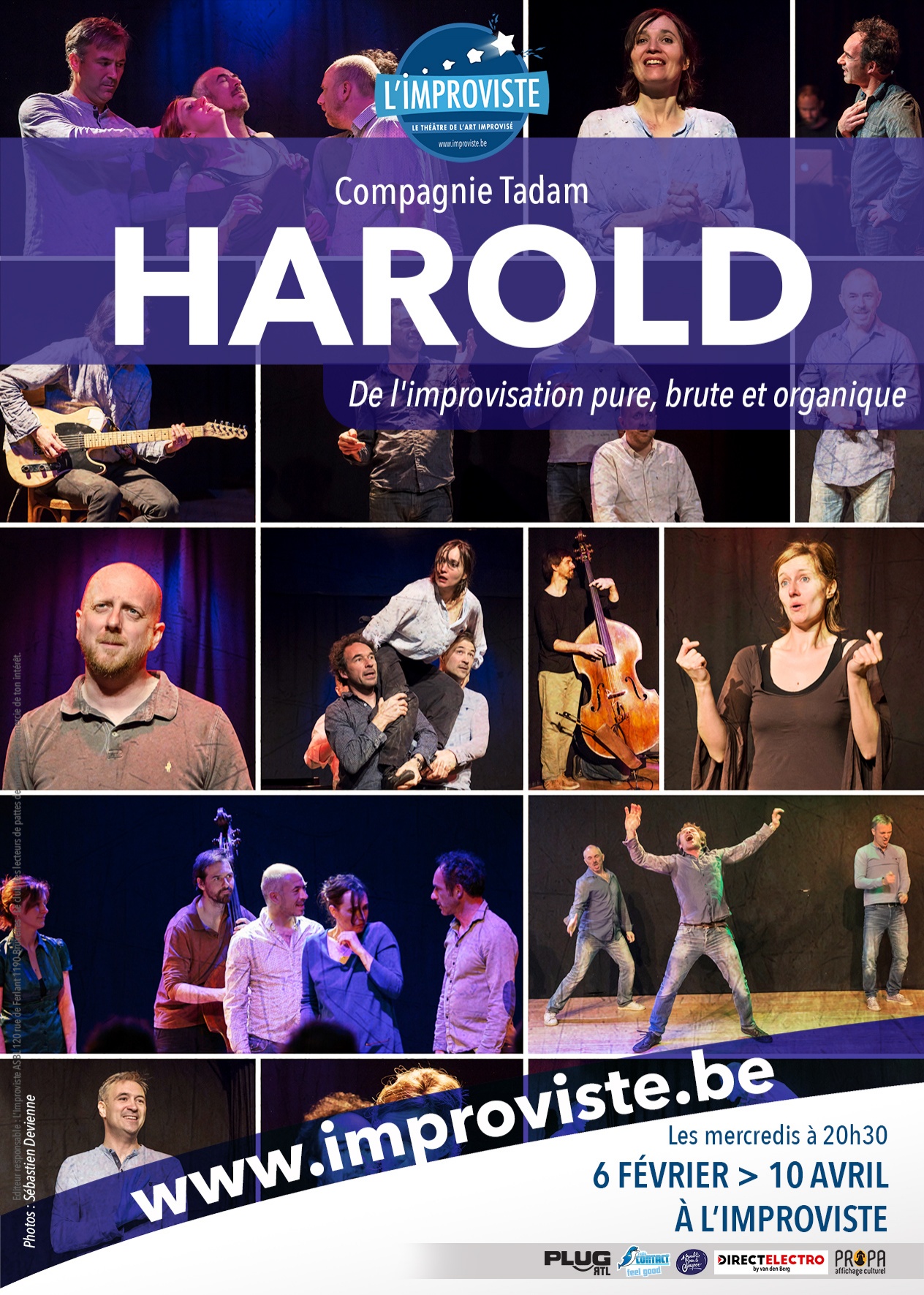 Concept d’impro créé à l’origine en Californie dans les années ’60, Tadam en propose sa propre version. Une heure et quart d’improvisation « freestyle » à partir d’un mot lancé par le public. Tout débute par une série de solos basés sur le fil rouge de la soirée. Ensuite, les scènes se mêlent et se démêlent, les situations se transforment, un personnage chasse l’autre avant de revenir. Tous les styles y passent : comédie, action, drame, suspense… Le tout en musique qui, elle aussi, est improvisée.