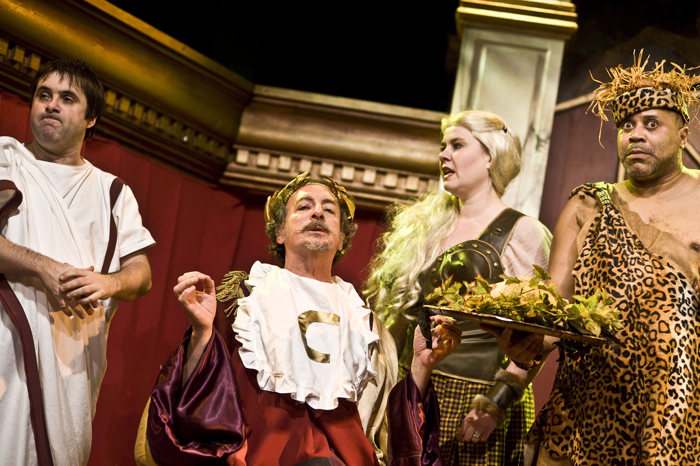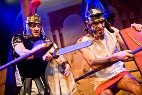 La troupe du Magic Land nous accueille dès l’entrée en légionnaires romains ou en chrétiens dissimulés dans les catacombes. Une chose est sûr : ils s’y connaissent pour placer l’ambiance. L’entrée dans la salle reste un grand moment : on rentre littéralement dans le décor qui occupe tout l’espace, bar compris. Les personnages déambulent, saluent tout le monde, placent les retardataires. Nous sommes littéralement à Rome, à l’ouverture d’une séance plénière du sénat.