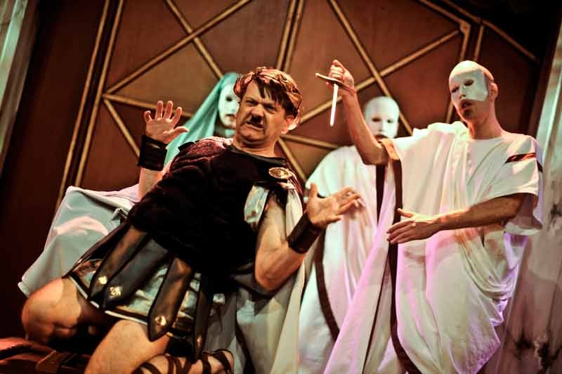 Une tragédie antique en jupette, entre thriller et Vaudeville, dans une débauche de faux marbre.
