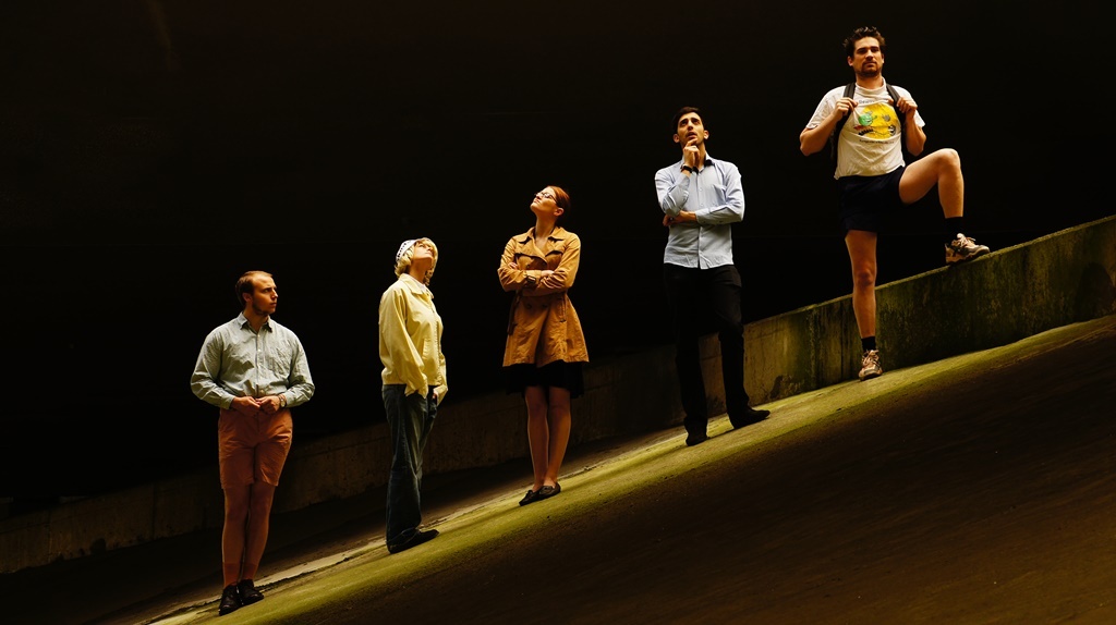 Rivalisant d’inventivité pour grappiller une place, cinq individus formant une queue n’ont progressivement plus qu’une idée : être le premier. Pour faire quoi ? Pour voir qui ? Pour aller où ? On ne le sait pas, l’important ne semble plus être là. Une file de cinq personnes, une seule place à l’avant, sauf si on inverse l’ordre de la queue, si on fait disparaître la file ou si on se hisse, discrètement, à la première place, stratégie choisie par l’aîné des protagoniste, le dénommé Dollan.