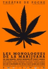 Les voix de Cypress Hill et Bob Marley résonnent dans la salle du Théâtre de Poche pendant que le public s’installe. Tous les sièges sont occupés. Le titre de la pièce est évocateur : « Les monologues de la marijuana ». Un sujet audacieux pour trois comédiens, au talent certain, qui pourtant n’échapperons pas, entre autre chose, à énumérer un par un les stéréotypes de la fumette.
